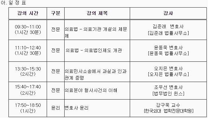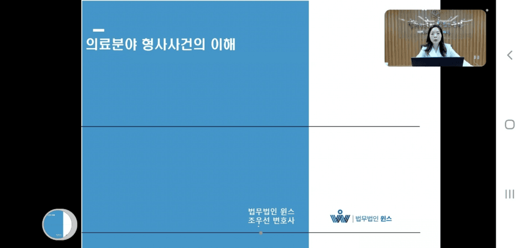 법무법인 윈스 조우선 파트너변호사는 2022. 7. 16. 서울지방변호사회에서 주최하는 의료법 연수 강의 중 [의료분야 형사사건의 이해]에 관하여 강의를 하였습니다.