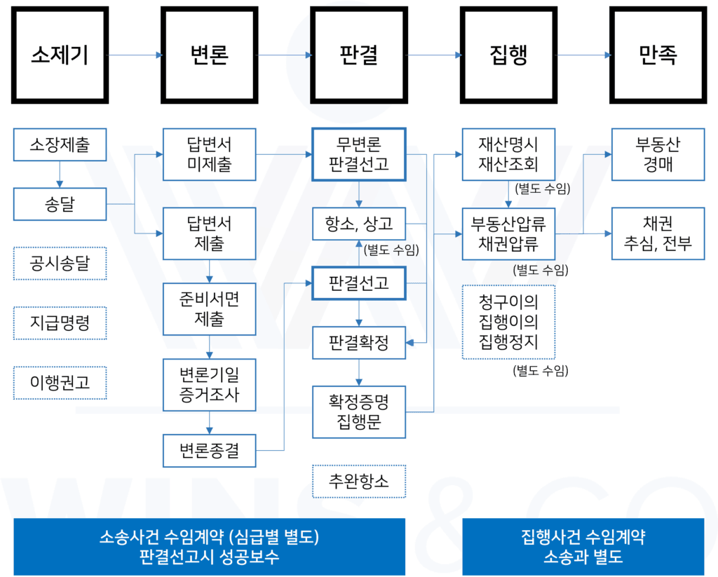 민사 본안 소송 및 그 집행의 절차의 흐름을 그림으로 표현하면 다음과 같습니다.