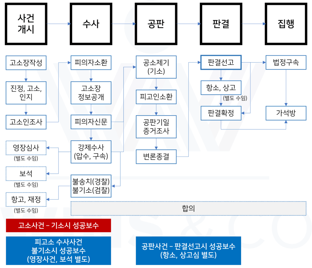 재판절차에서 피고인은 고소인(피해자)와 다투는 것이 아니라 검사와 싸우는 것이 됩니다.